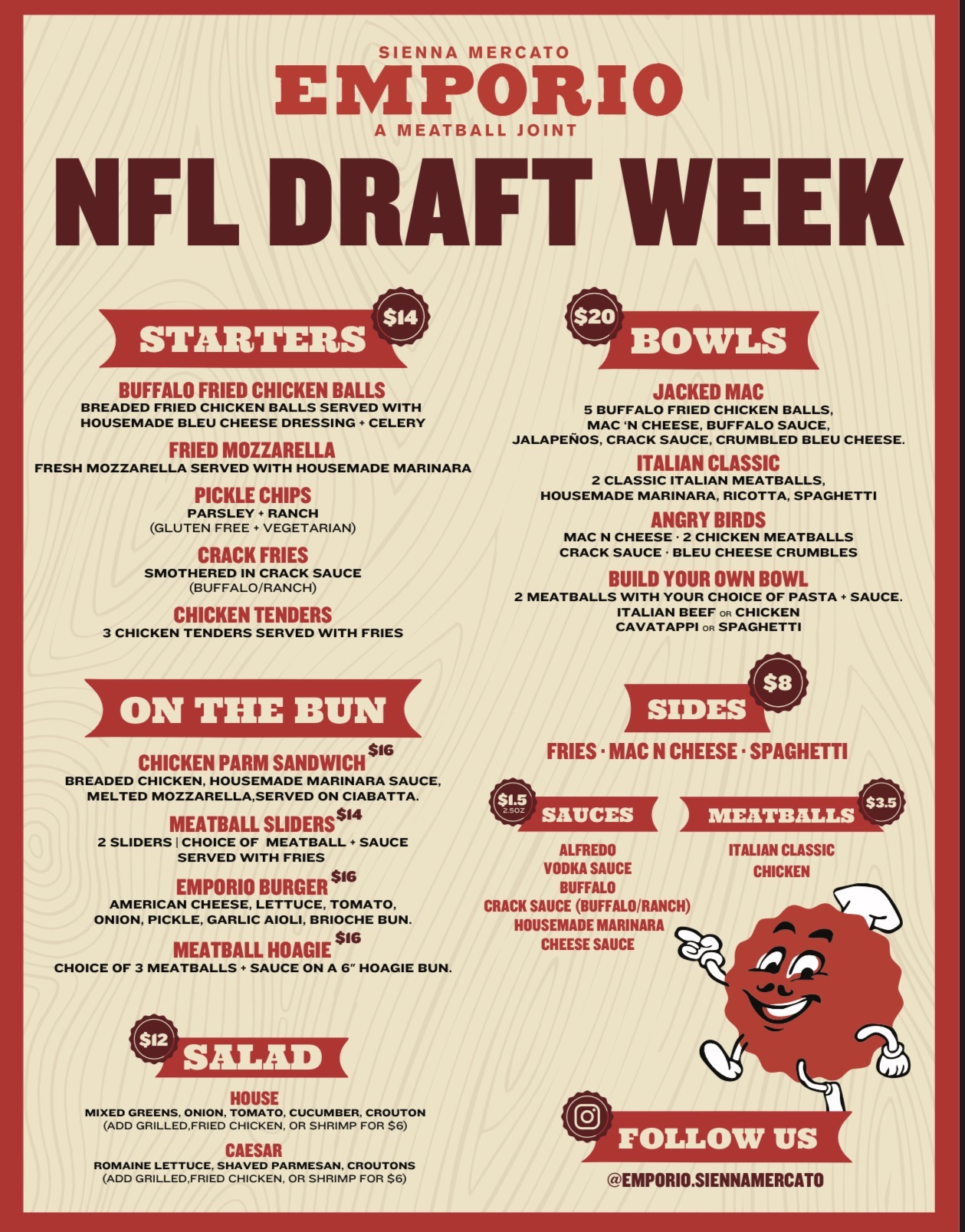 NFL DRAFT WEEK MENUS